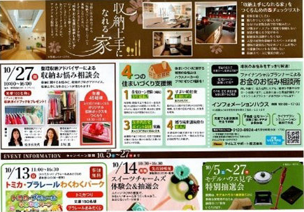 | 6月 HDC神戸 住まいとくらしフェスタ 「子供のやる気を120%アップさせる整理術」 ~リフォームで片付けやすい収納スペースを~ 11月 (株)ゆめや様 「探しものをしない暮らしを目指して」 10月 ハウジングギャラリー姫路 「収納お悩み相談会」 「お片付けが楽しくなるオリジナル収納BOXを作ろう!」 10月 ハウジングギャラリー西宮北口 「収納お悩み相談会」 「お片付けが楽しくなるオリジナル収納BOXを作ろう!」 11月 (株)ゆめや様 「スマートに暮らすための整理収納術」 |